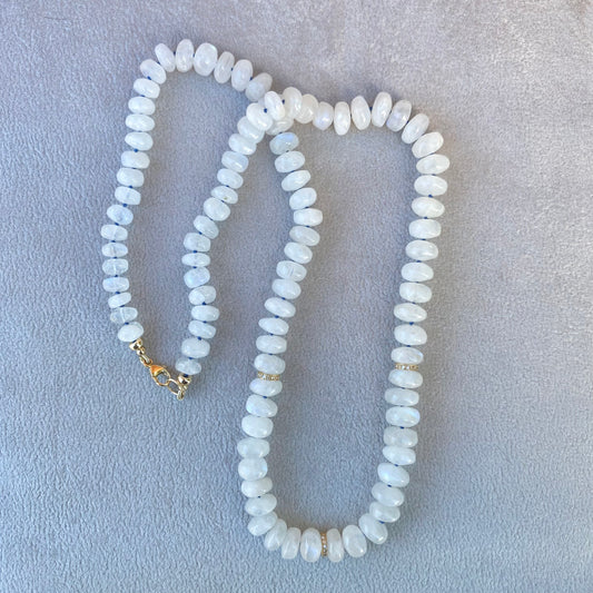Smooth Moonstone Full Strand Necklace with Diamond Gold Beads