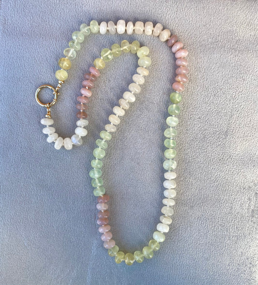 Strawberry, Lemon Quartz & Moonstone Full Strand Bead Necklace