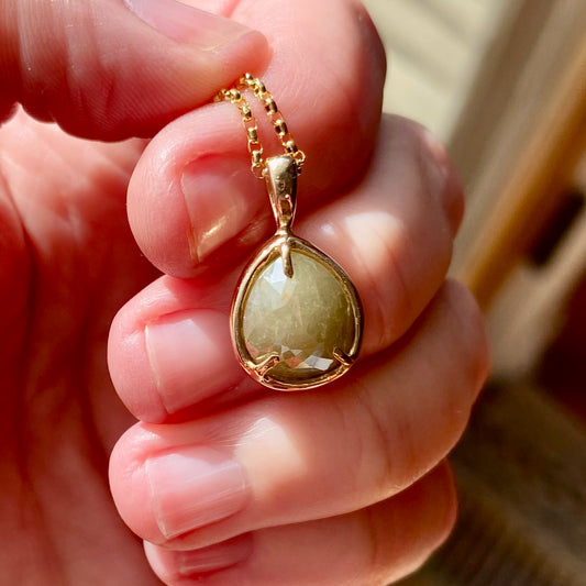 Rose Cut Yellow/Green Pear Shape Diamond Pendant