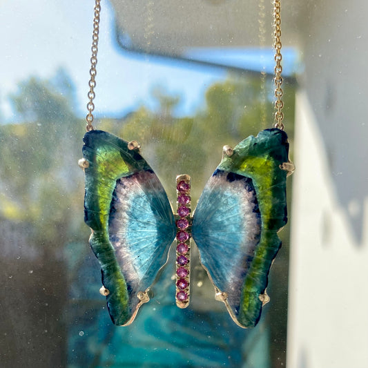 Tourmaline Crystal Pendant on Tourmaline Beaded Necklace