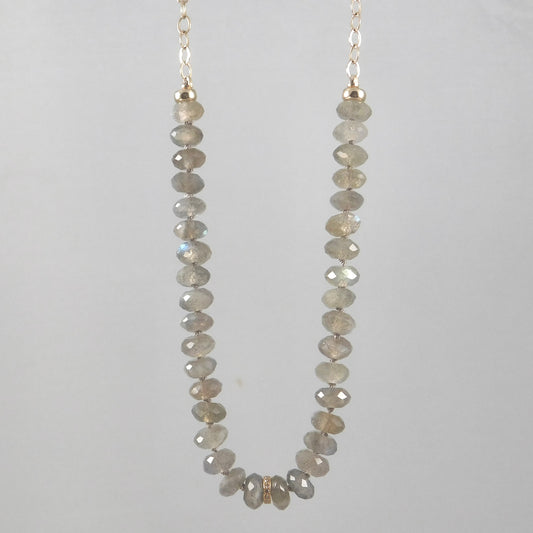Labradorite Half Bead & 14k Chain Necklace (On sale)