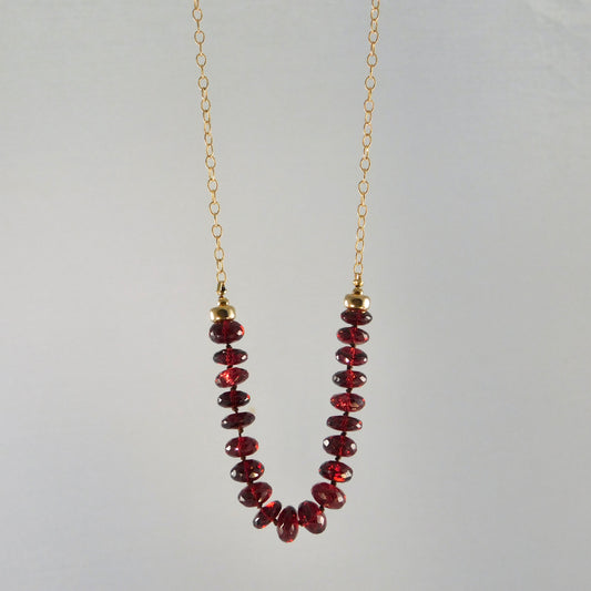 Garnet Faceted Beads & Half Chain Necklace